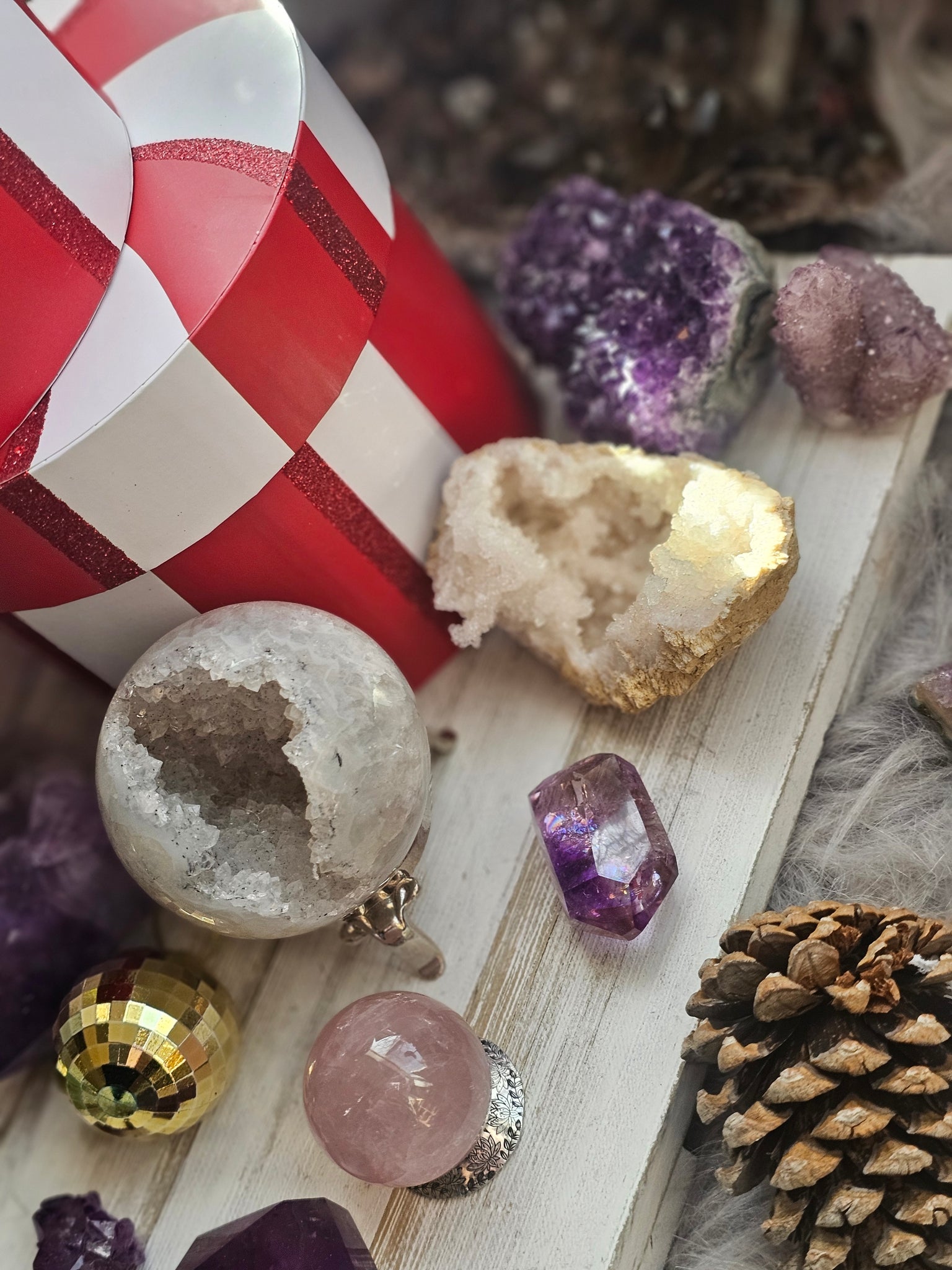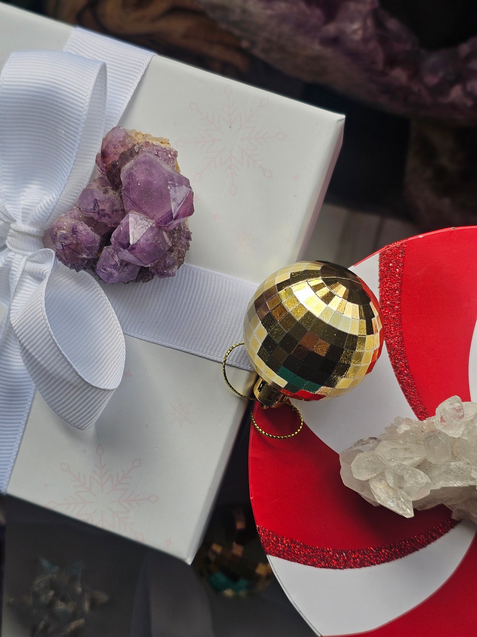 These specially curated "Holiday Crystal Mystery Boxes" are bursting with a festive mix of hand-selected, intuitively chosen crystals, each one picked with intention, high vibes, and a touch of holiday sparkle.